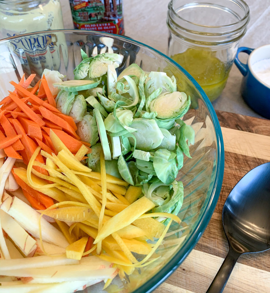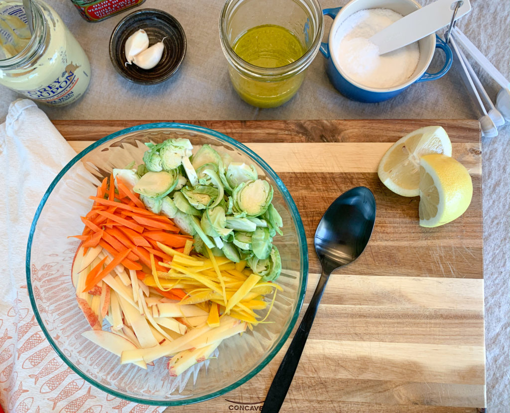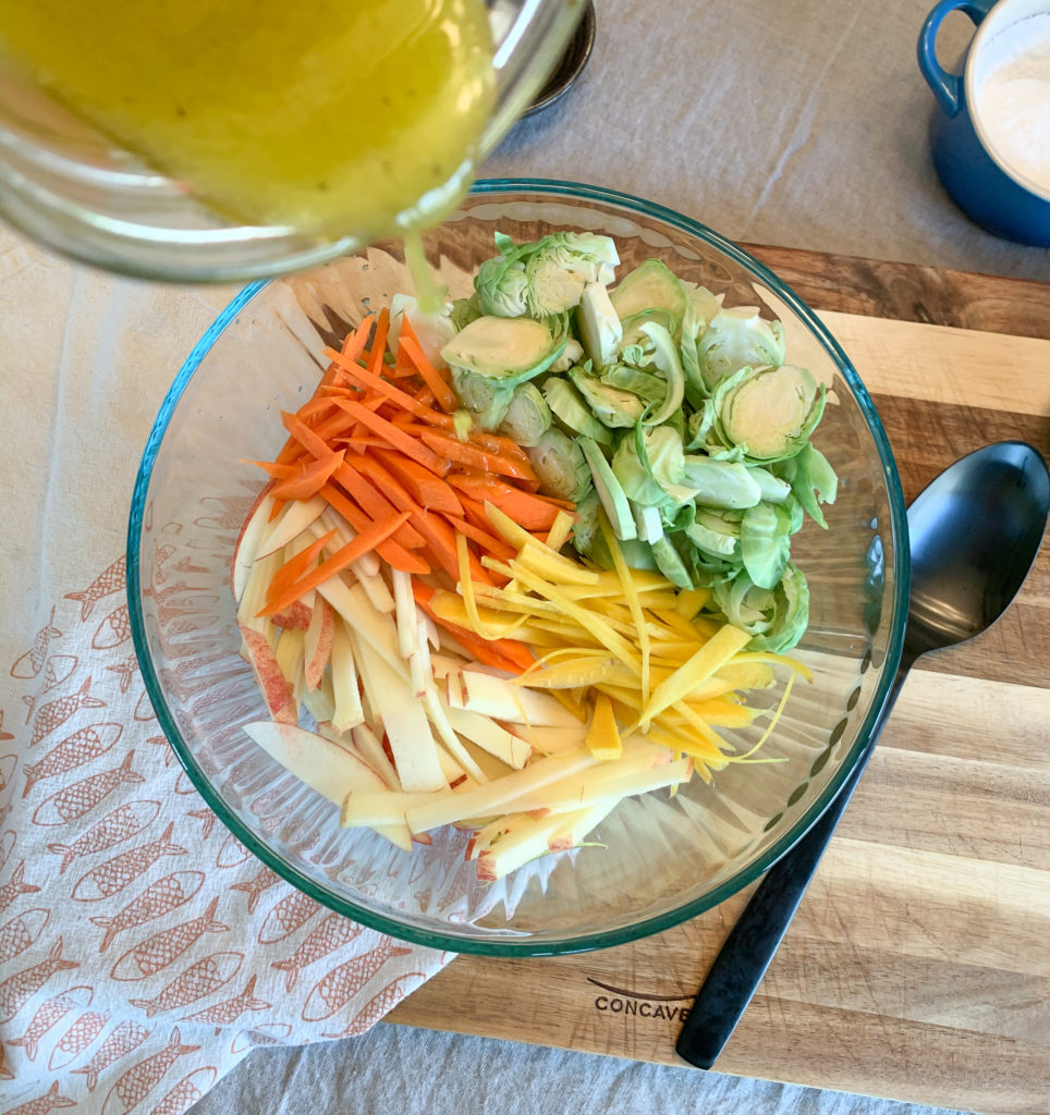 For this post, i’m just giving you the basics. Something that can be easily mastered and adapted to your specific tastes and added to whatever you’d like. It’s perfect in a chopped crunchy veg situation, tossed with roasted vegetables, with a simple green salad, or in a apple-carrot-brussels sprout slaw as pictured below (recipe to follow at some point, possibly).